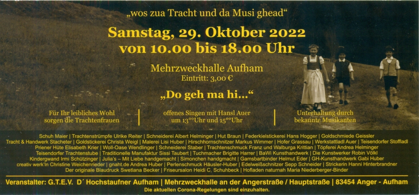 Trachtenmarkt in Aufham am Samstag, 26.Oktober 2024 ab 10:00 Uhr